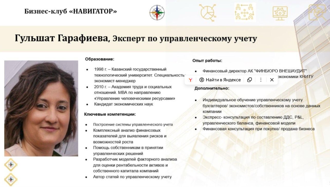 Спикер: Гульшат Гарафиева — Эксперт по управленческому учету